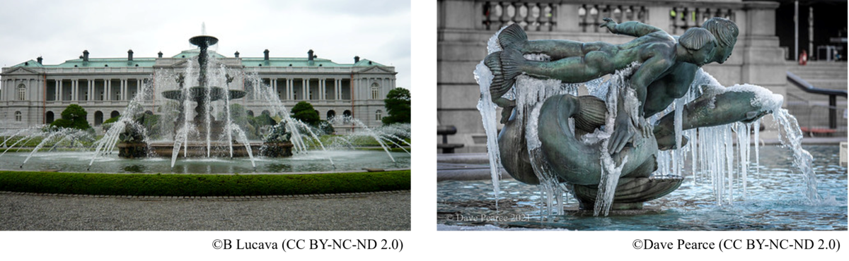 これは、入力した有名スポット画像に含まれていたTrafalgar Squareの画像と、東京都の迎賓館赤坂離宮の画像の組み合わせです。 確かに、これらは両者ともに噴水が共通して写されており、類似していますが、「日本のマチュピチュ」と竹田城跡のような「見た目が似ている」という観点からはすこし外れてしまいます。 本キャンペーンでは、こうした事例の類似度が高くなってしまうことを回避するため、上述のように形式的な画像の類似性についても考慮するような設計をしていました。