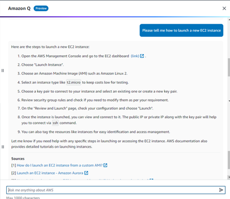 無料でPreviewとして公開されているAmazonQのチャットボットを触ってみました。