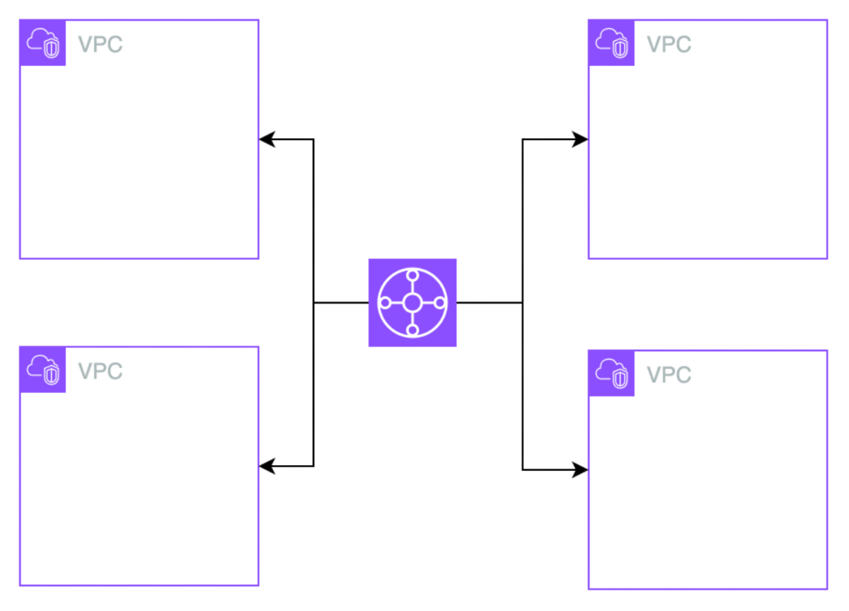 Transit Gateway(トランジットゲートウェイ)は、Amazon Web Services(AWS)のネットワークサービスで、複数のVPC(Virtual Private Cloud)やオンプレミスネットワークを一元的に接続するための仮想的なクラウドルータのようなものになります。これにより、複雑なネットワーク構成をシンプルに管理できるようになります。AWSでサービスを開発する際に、一つのVPCだけでサービスが完了するなら問題ないですが、大規模な開発になると複数のVPCを扱ってそれぞれのVPC毎に機能を持たせるような構成になります。その際にVPC間の接続を担うのがTransit Gatewayになります。