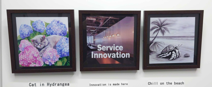 実際に額縁に入れて、サービスイノベーション部の応接室にも飾られています。もし打ち合わせなどで私たちの部署にご来訪される方がいらっしゃいましたら、注目してみてください。