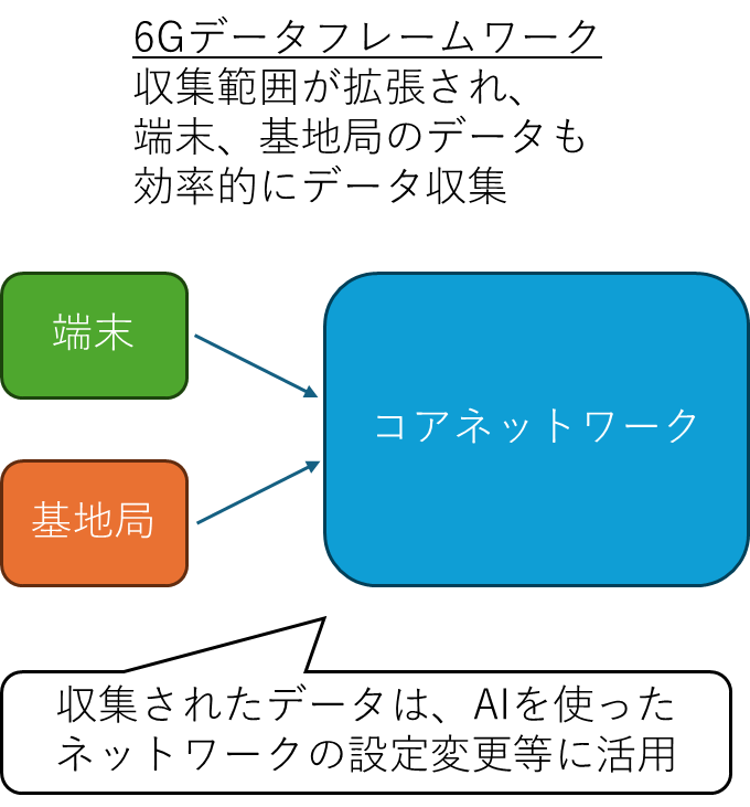- 6G では増え続けるデータに対応するため、より柔軟で安全なデータ収集の仕組みが検討されていること